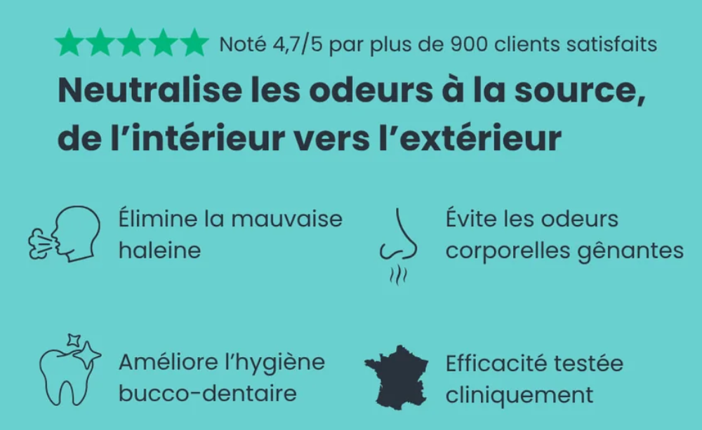 constatent une diminution des mauvaises odeurs. Même après une longue journée active, les odeurs buccales sont nettement réduites.