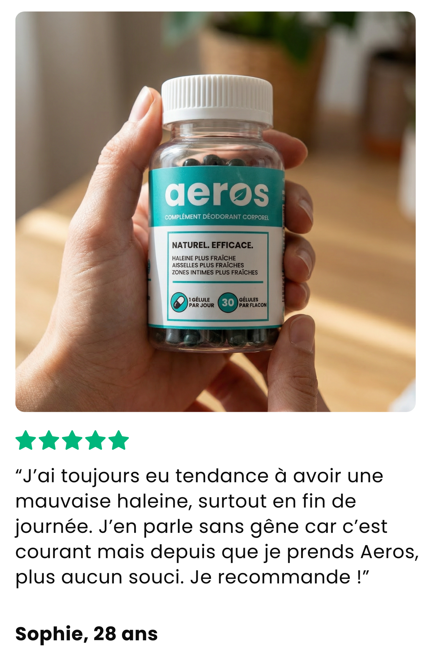 Teste Aeros chez toi : si tu n’es pas convaincu par les résultats, nous te remboursons dans un délai de 30 jours après la réception de ta commande.