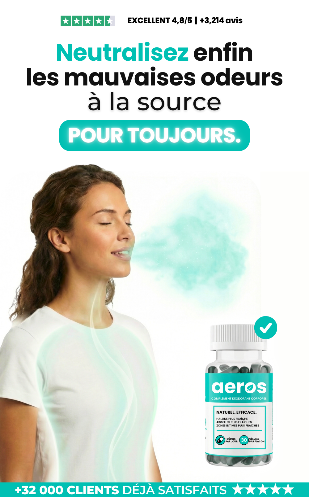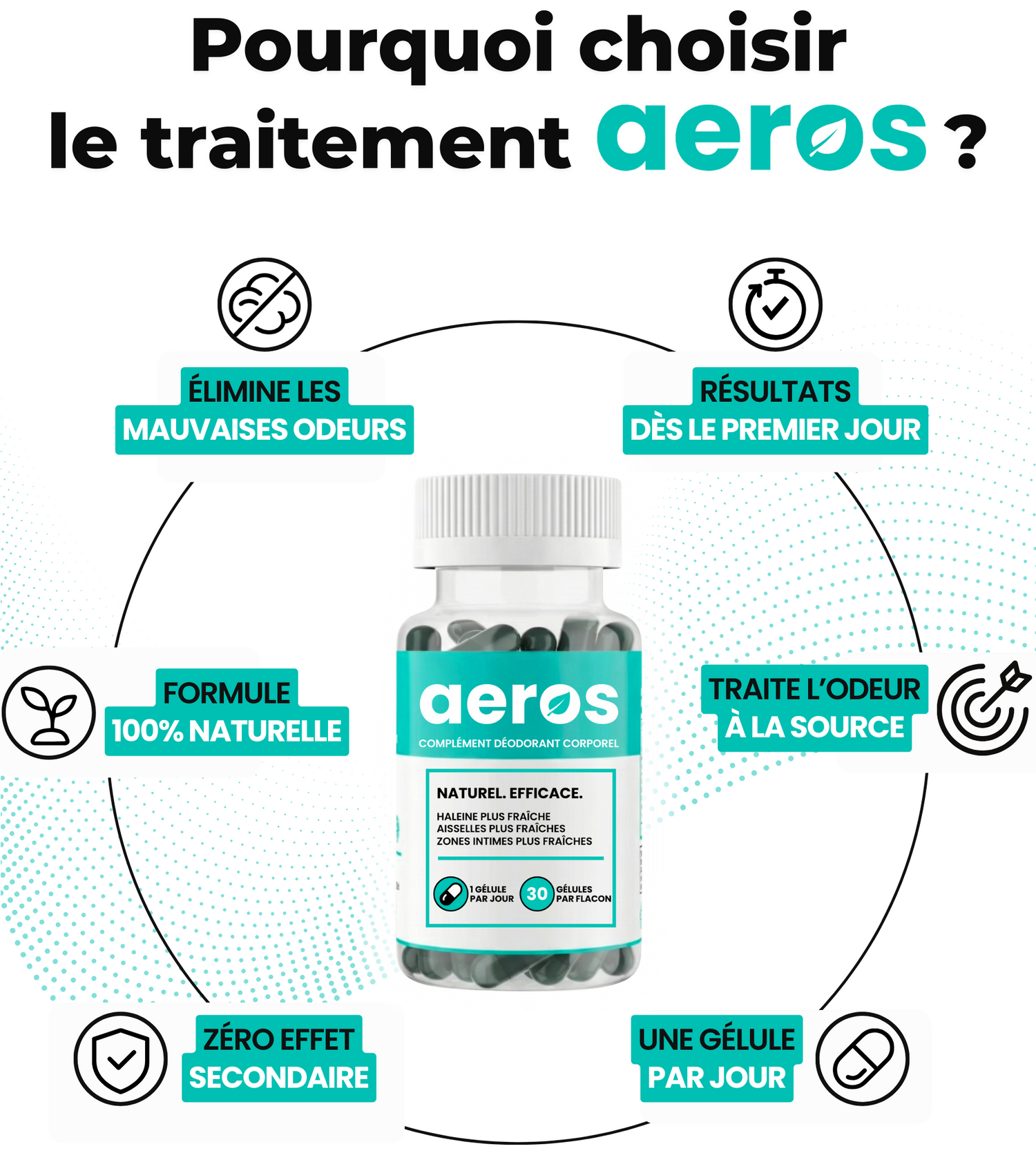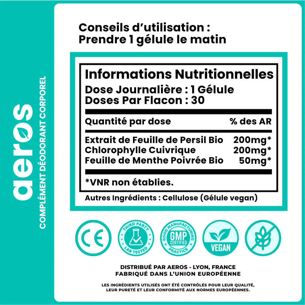 Aeros agit en plus de l’hygiène de base, en ciblant la cause interne de l’odeur.